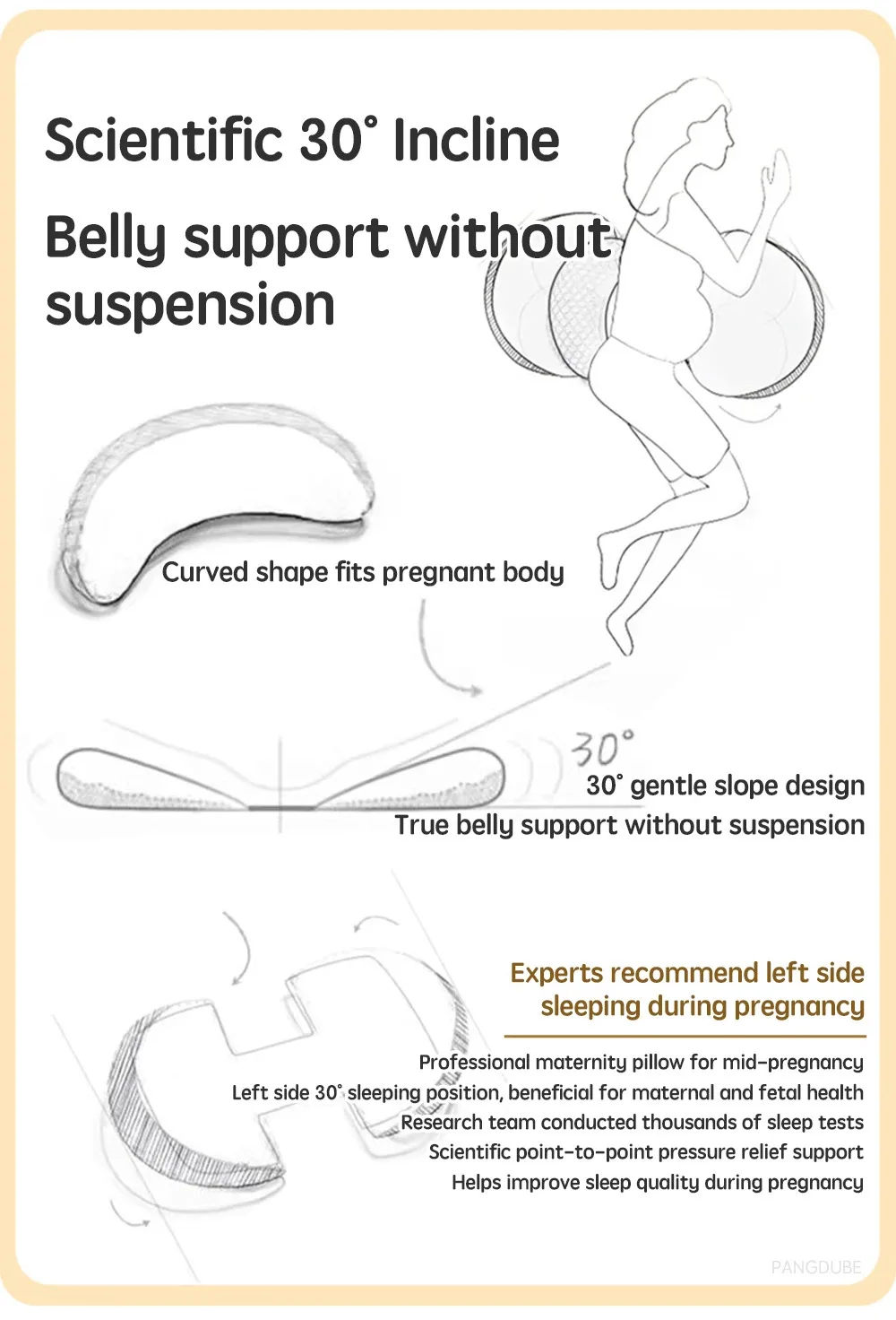 Consistent support encourages proper body alignment, which can help keep the baby in an optimal fetal position for comfort and easier movement. With gentle lift underneath the bump and full lumbar cushioning, your core stays aligned as the pillow protects the fetus from unnecessary pressure and strain.